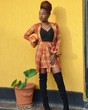 Comes in two different plaid patterns with the super bright orange-red-yellow or the more subtle pink-grey.