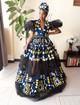 Our Angelica Maxi Dress is designed for the culturally confident. The gorgeous African Print (Blue yellow and white)is bold, fun, and stands out from the crowd. Featuring two black mesh partition from mid thigh to slightly below the knee and one from below the knee to ground, It has puffy mesh sleeves.