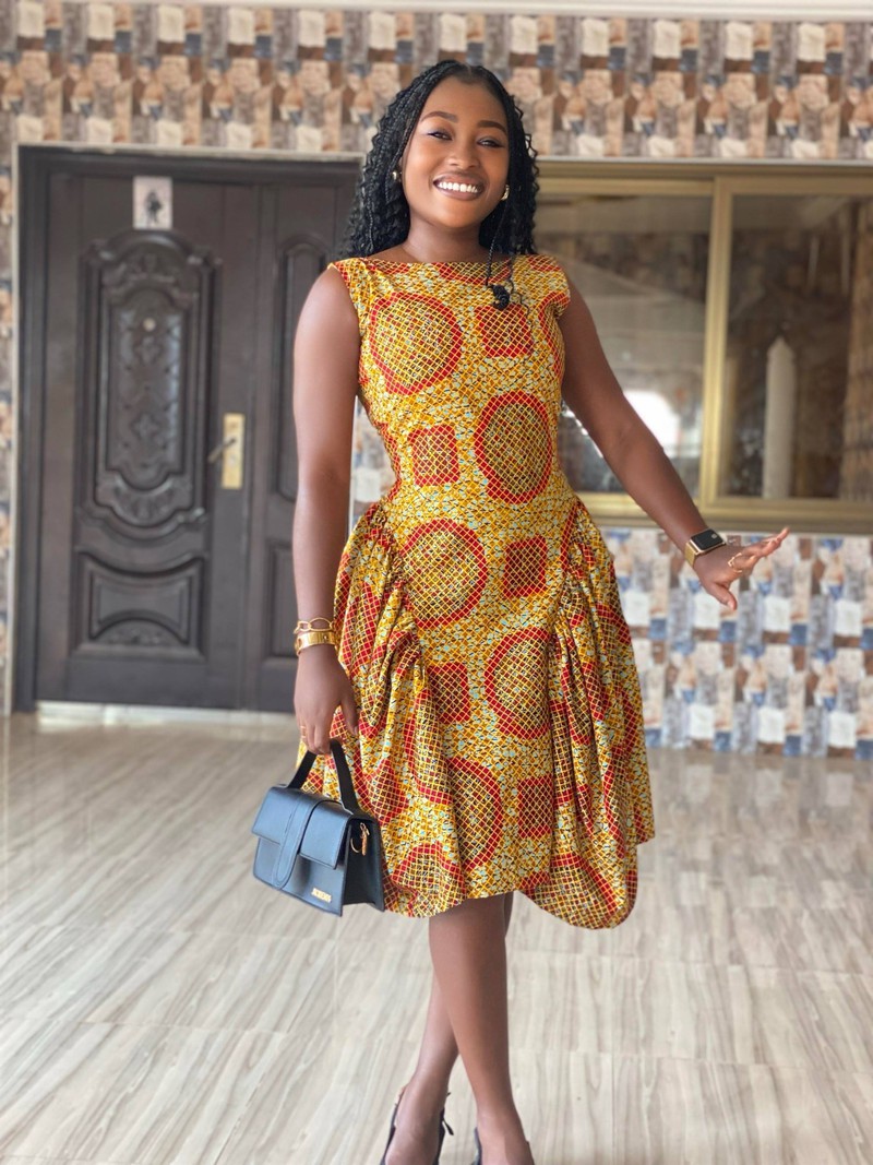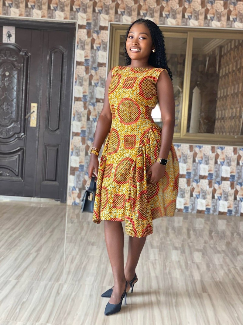 Embrace elegance and vibrant style with our stunning Ankara Off-Shoulder Ruffle Dress. This knee-length dress features a flattering off-shoulder design adorned with playful ruffles along the neckline and hem, creating a chic and feminine silhouette. Crafted from bright and intricate Ankara print fabric, this dress showcases the rich colors and bold patterns that celebrate African heritage.
