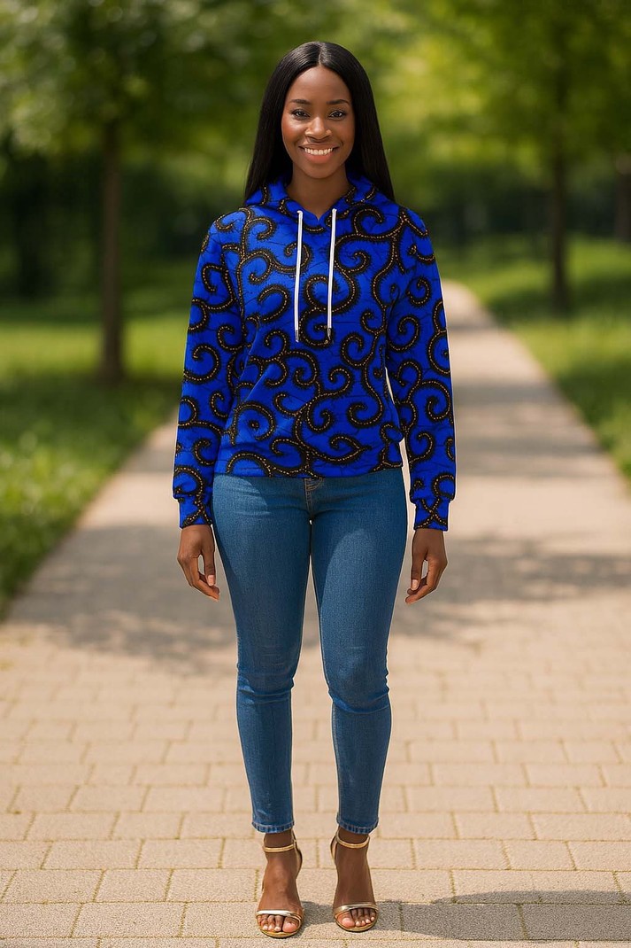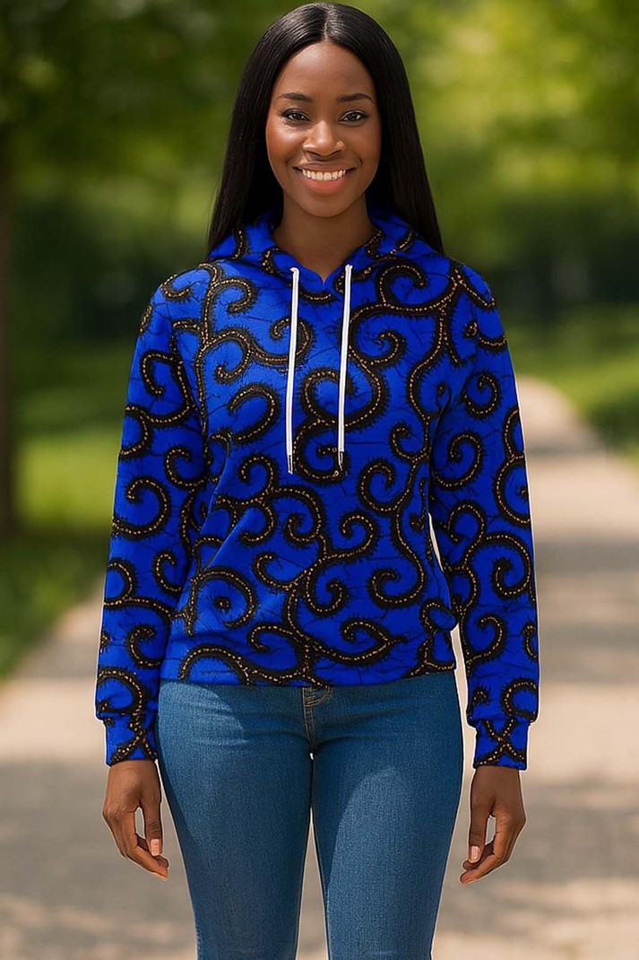 Get ready to make a statement with our Ankara Hoodie For Women in Chic Vintage Pattern! This stylish hoodie features a retro vintage pattern that will turn heads. Stay warm and stand out from the crowd with this unique and eye-catching piece. Perfect for adding some personality to your wardrobe.