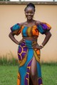 Embrace elegance and vibrant style with our stunning Ankara Off-Shoulder Ruffle Dress. This knee-length dress features a flattering off-shoulder design adorned with playful ruffles along the neckline and hem, creating a chic and feminine silhouette. Crafted from bright and intricate Ankara print fabric, this dress showcases the rich colors and bold patterns that celebrate African heritage.