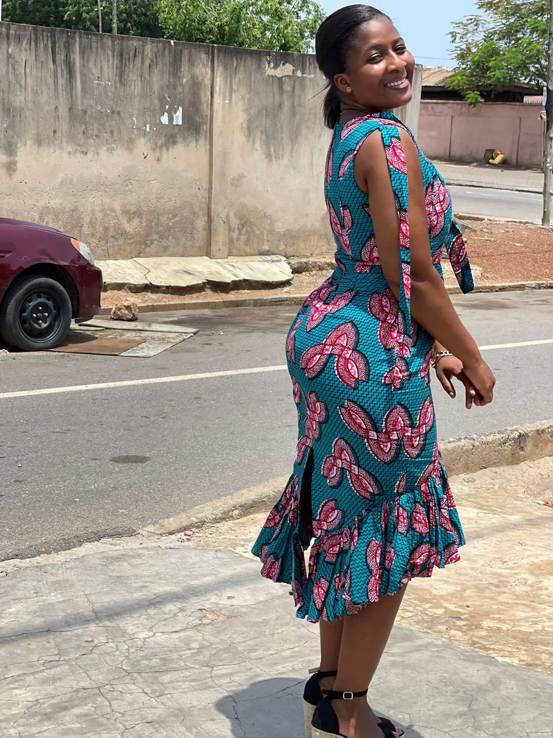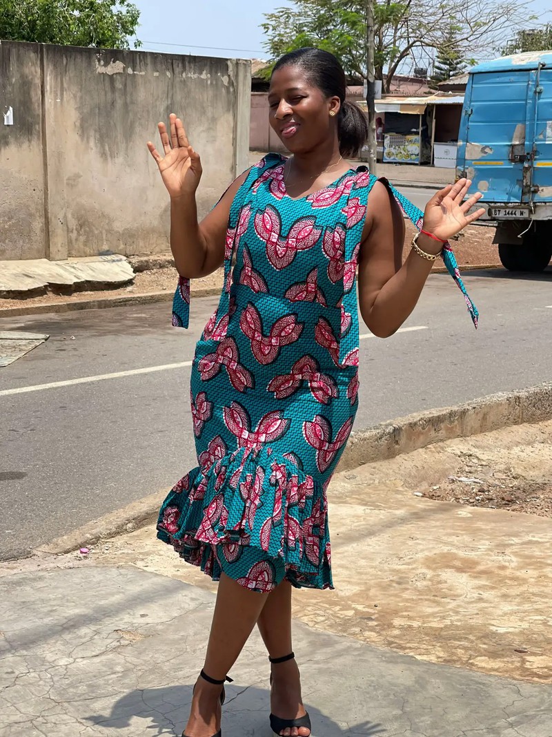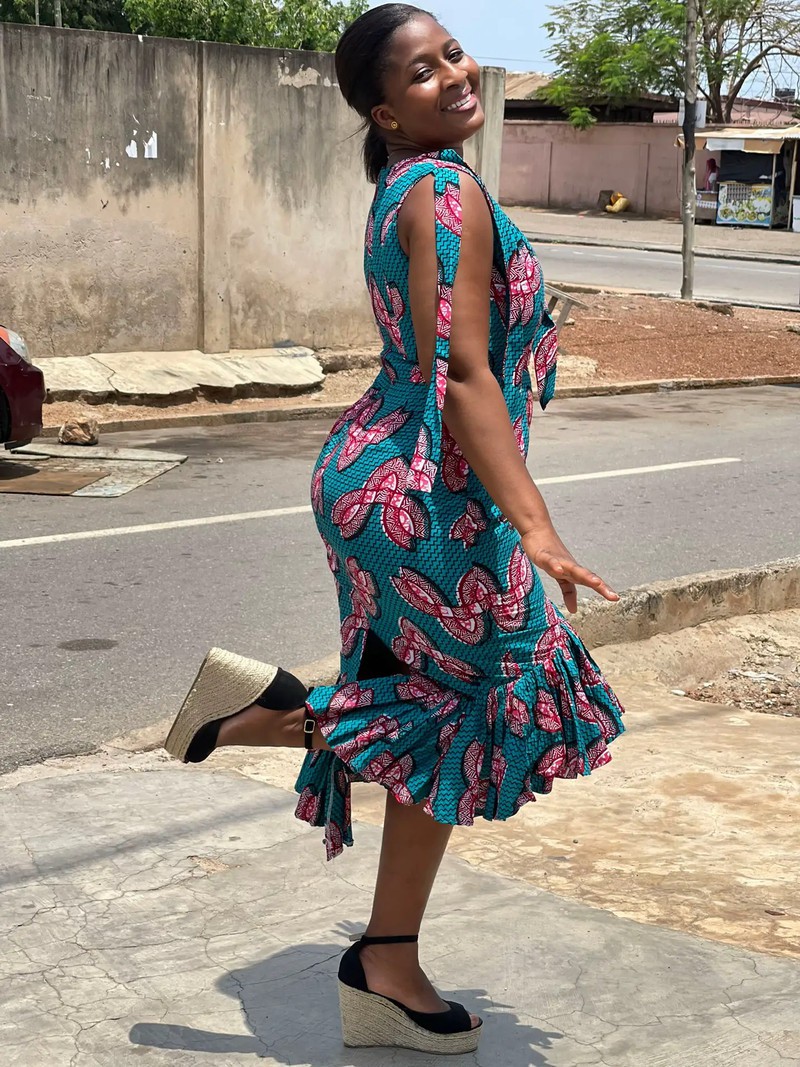 Embrace elegance and vibrant style with our stunning Ankara Off-Shoulder Ruffle Dress. This knee-length dress features a flattering off-shoulder design adorned with playful ruffles along the neckline and hem, creating a chic and feminine silhouette. Crafted from bright and intricate Ankara print fabric, this dress showcases the rich colors and bold patterns that celebrate African heritage.