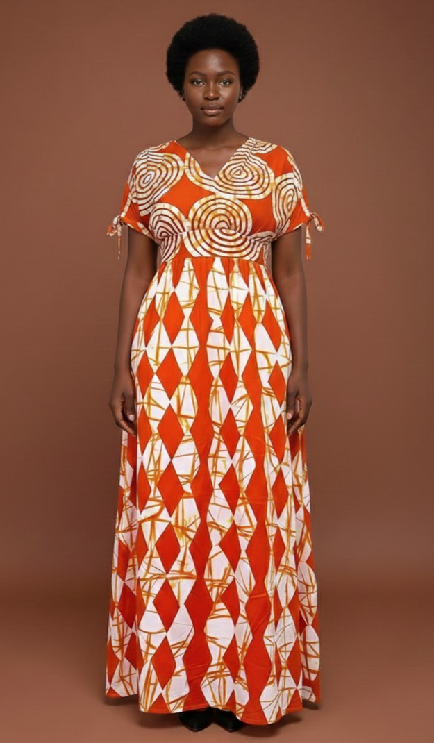Make a statement with this vibrant Ankara Print Maxi Dressperfect for weddings, parties, and cultural celebrations. Expertly handmade in Africa using 100% cotton, this stunning dress blends tradition, elegance, and comfort.