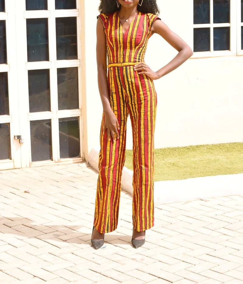 Ankara wooden stripe jumpsuit