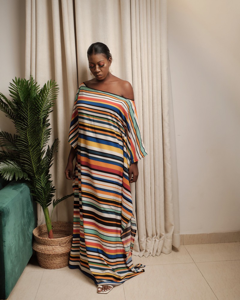 Meet Anna, the life of the wardrobe party, bursting with bold, joyful energy. This rainbow-striped beauty is made to lift moods and turn heads. Each stripe dances in its rhythm, some thick, some slim, weaving a tapestry of colour that feels like sunshine after rain.