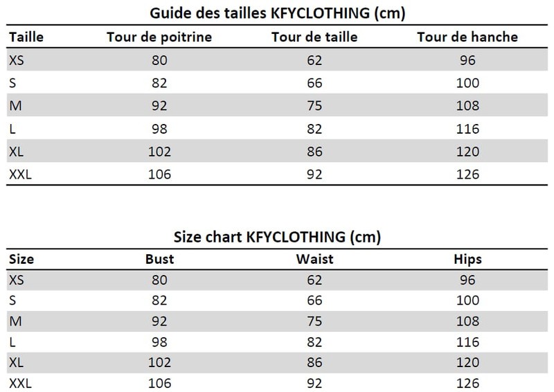 | Below the breasts (incm) | Above the breasts (incm) | EU | UK | US |