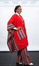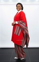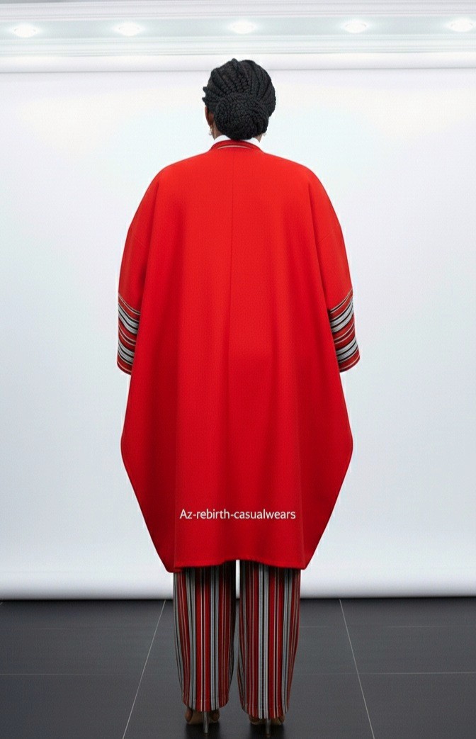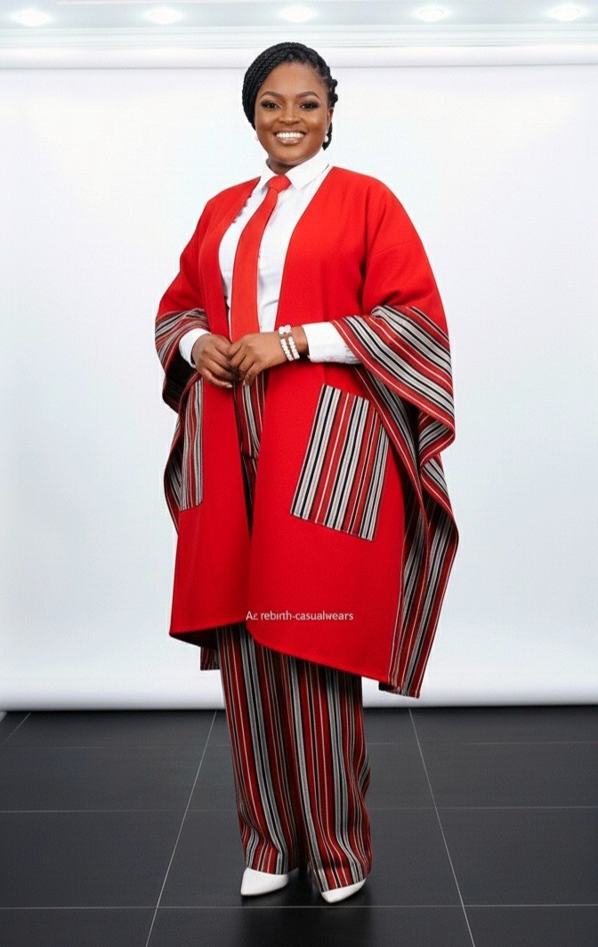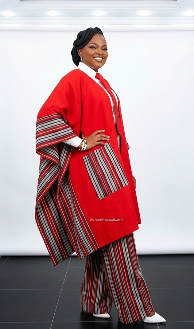 The kimono and pant are crafted from premium Aso-Oke fabric, featuring a rich red tone with elegant striped details that give the outfit a refined, cultural look.