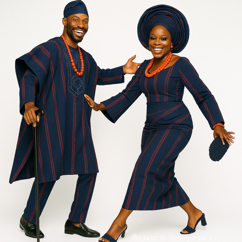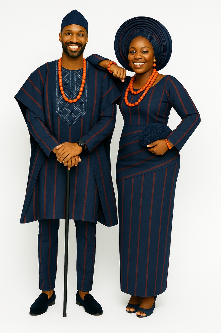 Get our stunning Aso Oke couple's outfits, crafted with high-quality fabric! Available in all sizes for both men and women. Each set includes: