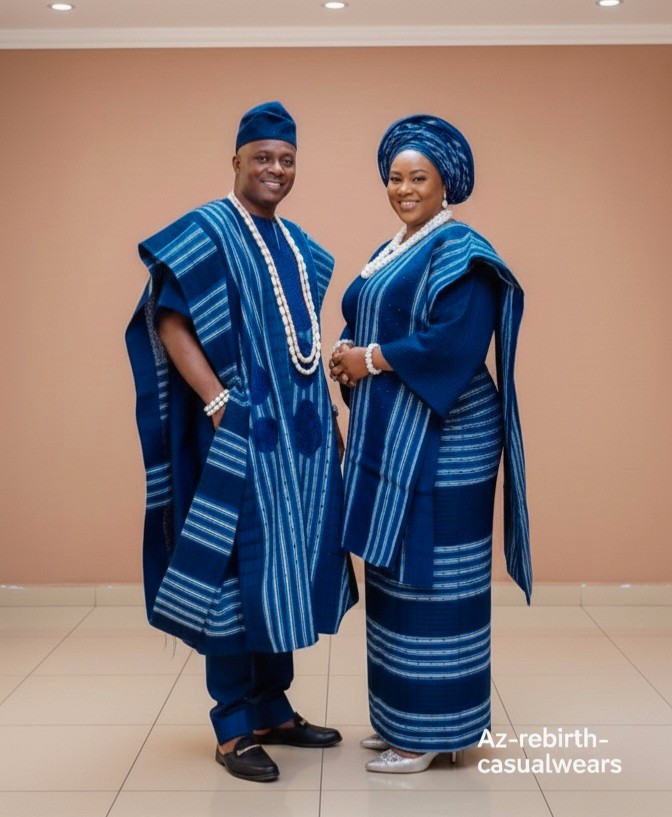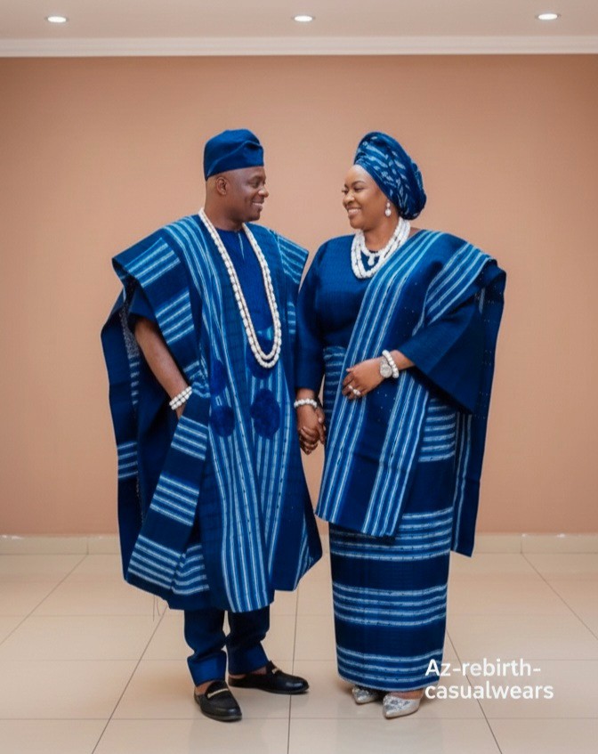 Get our stunning Aso Oke couple's outfits, crafted with high-quality fabric! Available in all sizes for both men and women. Each set includes: