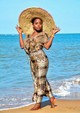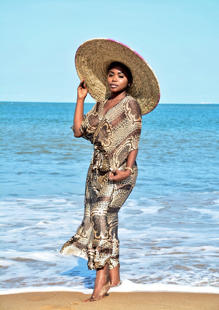 The dress is well cut in a beautiful wax and fits me perfectly. Thank you.