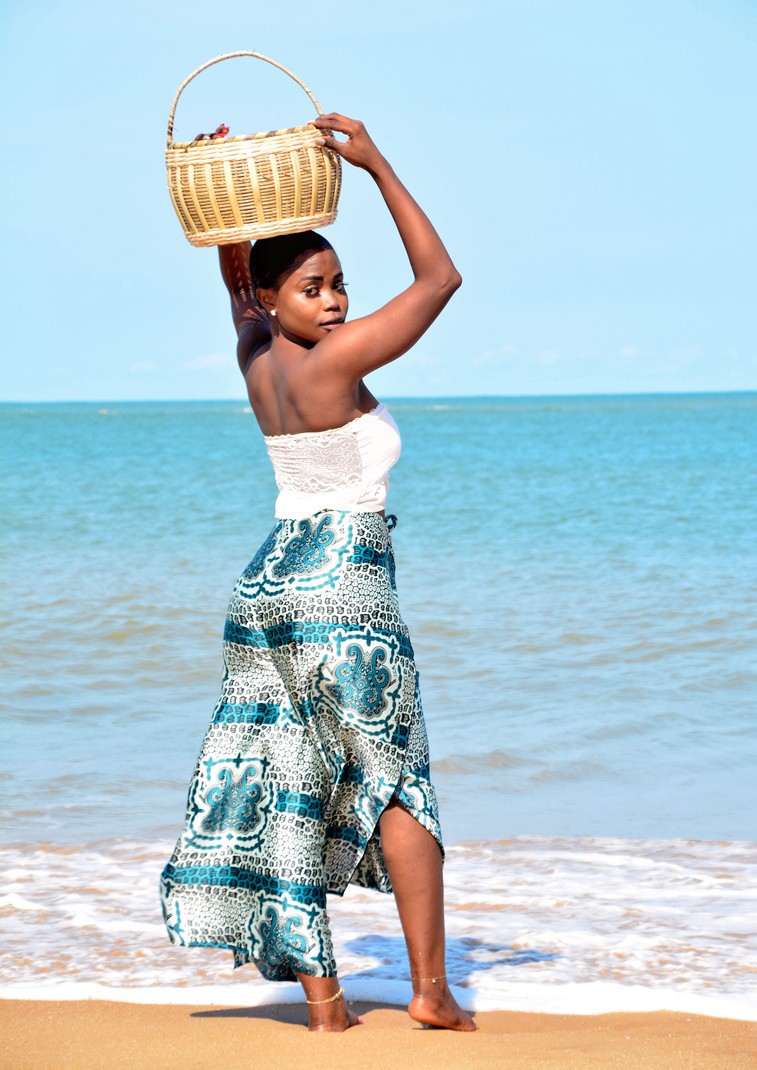 The dress is well cut in a beautiful wax and fits me perfectly. Thank you.