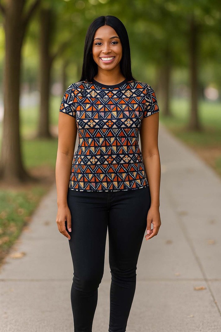 Celebrate your heritage with the Authentic Bogolan Afrocentric Shirt, crafted from traditional mud cloth patterns that tell a story of culture and identity. This tee combines comfort with meaningful design, making it perfect for those who want to express pride in their roots while enjoying a stylish, breathable fit. Embrace authenticity and stand out with a shirt that honors timeless African artistry. Product Features Please Compare your Measurements To our Size Chart This T-shirt is Designed for fashionable women. Made from 5.47 Oz. 100% polyester. Double-needle hemmed sleeves and bottom. Vivid print that will never fade after washing Soft, lightweight and quick drying. Delivery Time This item will be processed within 3-7 business days (Excluding Weekends and Holidays). Once products ships it can take up to 15 Business days depending on your location. Out of Stock items can be requested by emailing us at [email protected] Care Instructions Machine wash cold inside out. Gentle cycle with mild detergent and like colors. Do not use bleach or fabric softener. Do not tumble dry. Hang to dry to ensure maximum shelf life. Iron inside out if necessary. Do not iron the print. Do not dry clean.