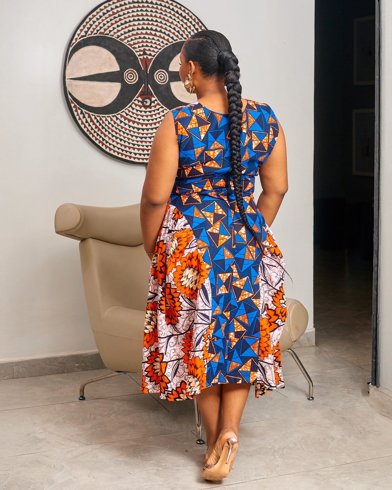 AVA AFRICAN PRINT MIDI DRESS DETAILS: