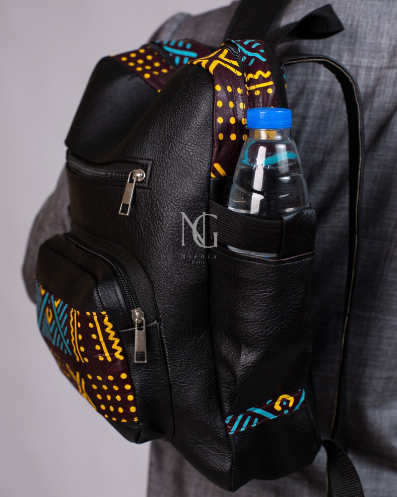 Bags Backpacks Color: Black Material: Ankara Material: Faux Leather