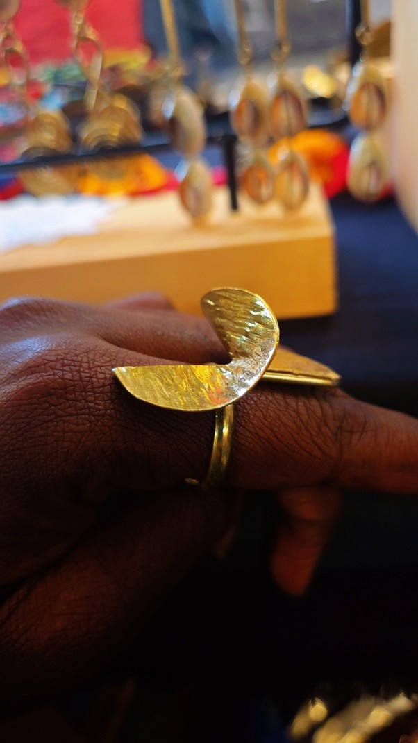 Bague en bronze artisanale du Sénégal, symbole d’authenticité et d’héritage artisanal. Ajustable et unique, elle allie tradition et élégance intemporelle.