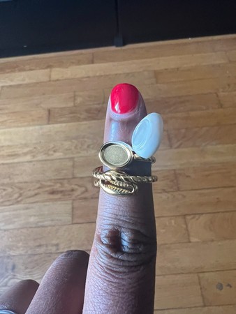 The ring is lovely but a little sharp and it hurts my finger when I wear it. The earrings are lovely but after just a week they already felt apart.