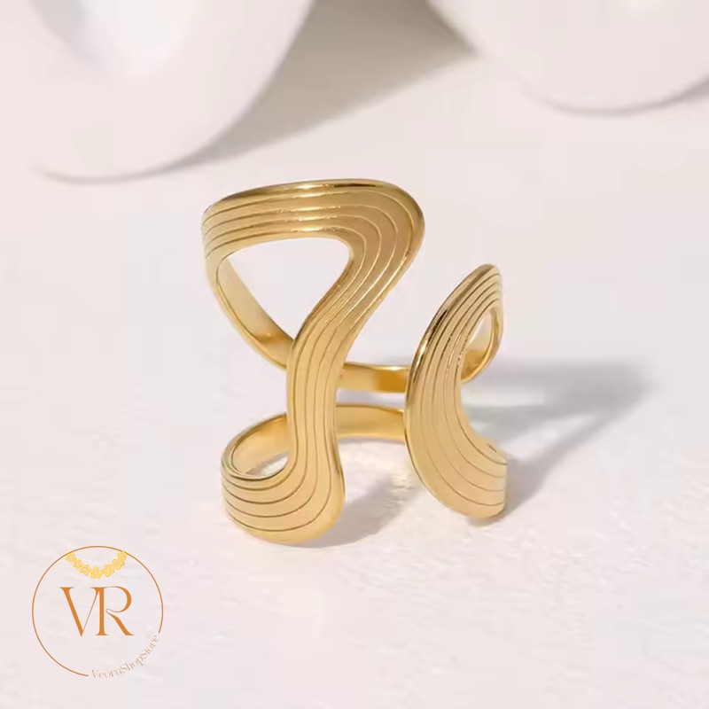 La bague « Ondine » incarne la douceur et la fluidité des formes naturelles. Son design évoque les mouvements de l'eau et symbolise l'harmonie et la grâce. Légère, raffinée et moderne, elle apporte une touche d'élégance dorée à chaque geste. ✦ Détails du produit • Type : bague dorée ajustable • Taille : 1,8 cm de hauteur • Poids : 4,7 g • Matériaux : alliage doré poli (résistant et hypoallergénique) • Couleur : or brillant • Ajustable : oui (convient à la plupart des tailles de doigt) ✦ Points forts • Design inspiré de la nature et des lignes fluides • Finition miroir pour une brillance élégante • Confortable à porter au quotidien • Légère et résistance à l'usure ✦ Style & occasions Parfaite pour compléter un look chic, minimaliste ou bohème. Elle se porte seule pour un effet raffiné ou en combinaison avec d'autres bagues dorées pour un style plus affirmé.