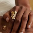 Elle se porte seule pour un effet raffiné ou en combinaison avec d’autres bagues dorées pour un style plus affirmé.