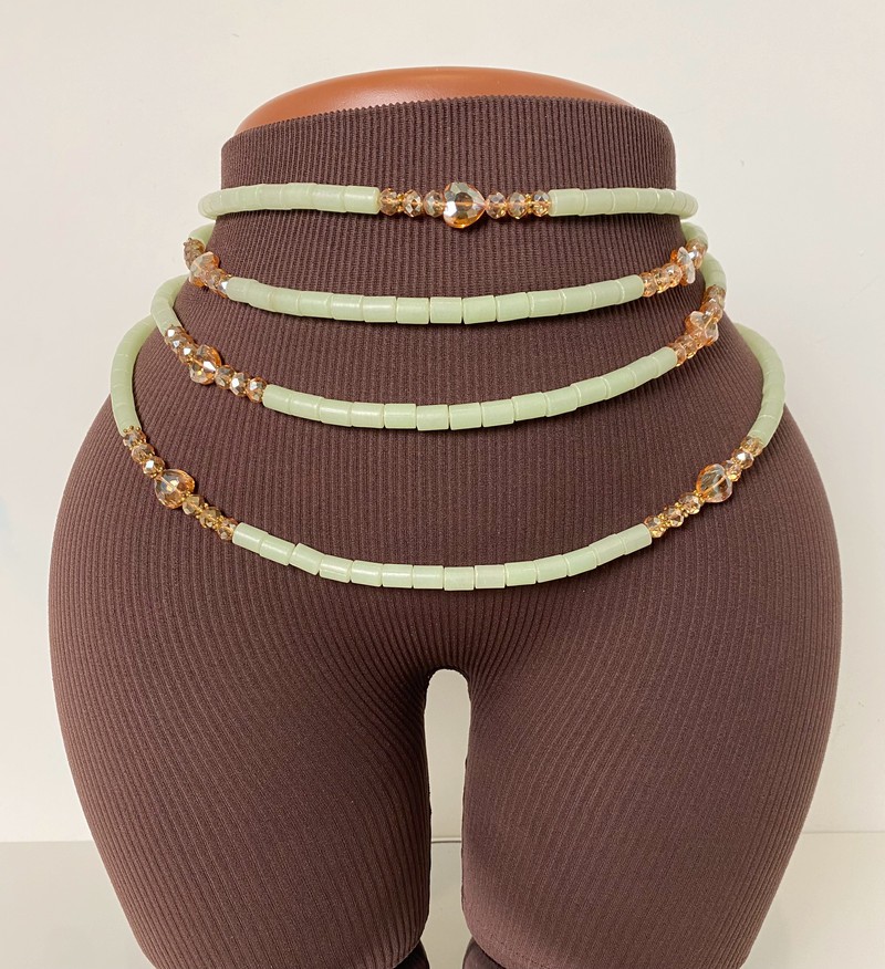 Ajoutez une touche de lumière et d’originalité à votre silhouette grâce à notre baya fluorescent, une version éclatante de nos perles de hanche traditionnelles. Confectionnée avec des perles lumineuses qui brillent dans l’obscurité ou sous lumière UV, elle allie sensualité, confort et audace. Montée sur un fil transparent et étirable, elle s’adapte parfaitement à votre taille tout en restant légère et agréable à porter.