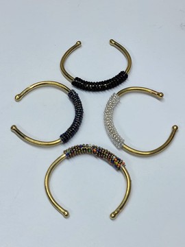 This elegant gold bracelet, handcrafted by Kenyan artisans, features a smooth, curved design with fine wire detailing. A harmonious blend of cultural heritage and modern sophistication, it’s crafted to enhance your style with timeless beauty.