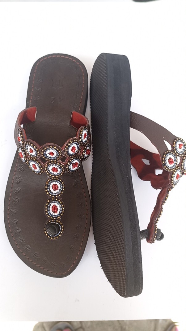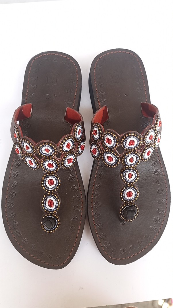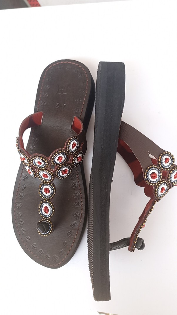 Maasai sandal made using beads best worn during summer available in black sole and brown it's originated from the Maasai people in Kenya it was mostly worn during traditional weddings, to clean it you only need a wet pice of cloth, the sole is favorable to all kinds of floors, all sizes are available best gift one can give a love one client can specify the colour that she wants we ship to all countries using dhl