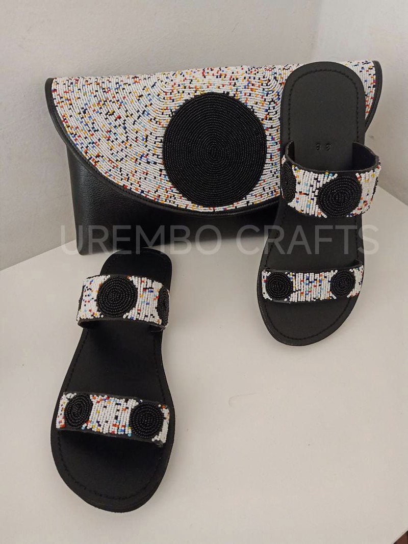 Product Name: Handmade Beaded Leather Sandals Brand: Urembo Crafts Product Description: Step into elegance and culture with these Handmade Beaded Leather Sandals from Urembo Crafts. Skillfully crafted by local artisans, these sandals feature a stunning heart-shaped beadwork design in vibrant multicolor patterns, representing African heritage and style. Each pair is made using high-quality, durable leather for long-lasting comfort and support. The intricate beadwork is carefully hand-stitched to ensure uniqueness and attention to detail, making every sandal one of a kind. Perfect for casual wear, beach outings, summer events, or adding a touch of tradition to your modern look. Key Features: 100% genuine leather sole and straps Beautiful multicolored heart-shaped bead design Soft and comfortable inner lining for all-day wear Handmade by skilled Kenyan artisans Available in various sizes Lightweight and flexible for everyday comfort Care Instructions: Wipe clean with a soft, damp cloth Avoid prolonged exposure to water