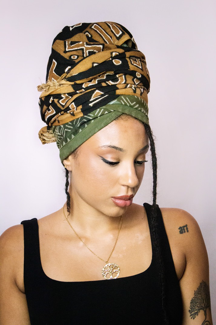 "Sata" scarf in cotton fabric hand-painted with bogolan patterns ... We have designed our collection of scarves especially for the autumn-winter period in order to keep your neck warm and protected from cold winds while providing this touch of contemporary afro style that will make your style stand out ⭐️ Who said you had to have a sad look in winter? We first make the cotton woven by hand from organic materials then we dye it in a Bogolan pattern to have this beautiful scarf. ⭐️ It will keep you warm. it can also be used as a turban. Available in white. Blue, Brown and Beige.