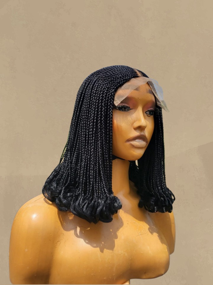 This Braided wig is made with Full Lace and Spiral Curls extension. It is Knotless, sleek and natural looking box braid.