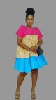 Bimbo Pink and Yellow Ruffled Dress with Blue Trim