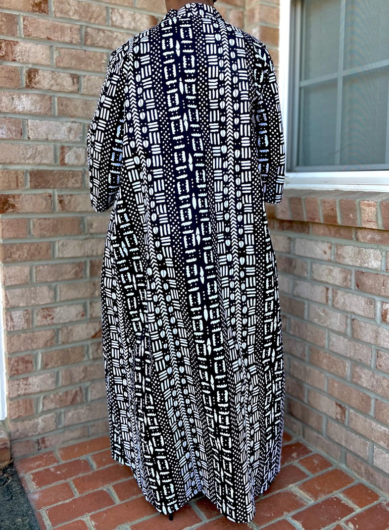Black and White African Print Ankara Multicolor Oversized Blazer Duster