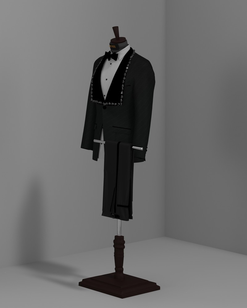 BLACK BRIDGED JACQUARD TUXEDO SUIT...............BEST SELLER