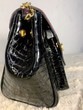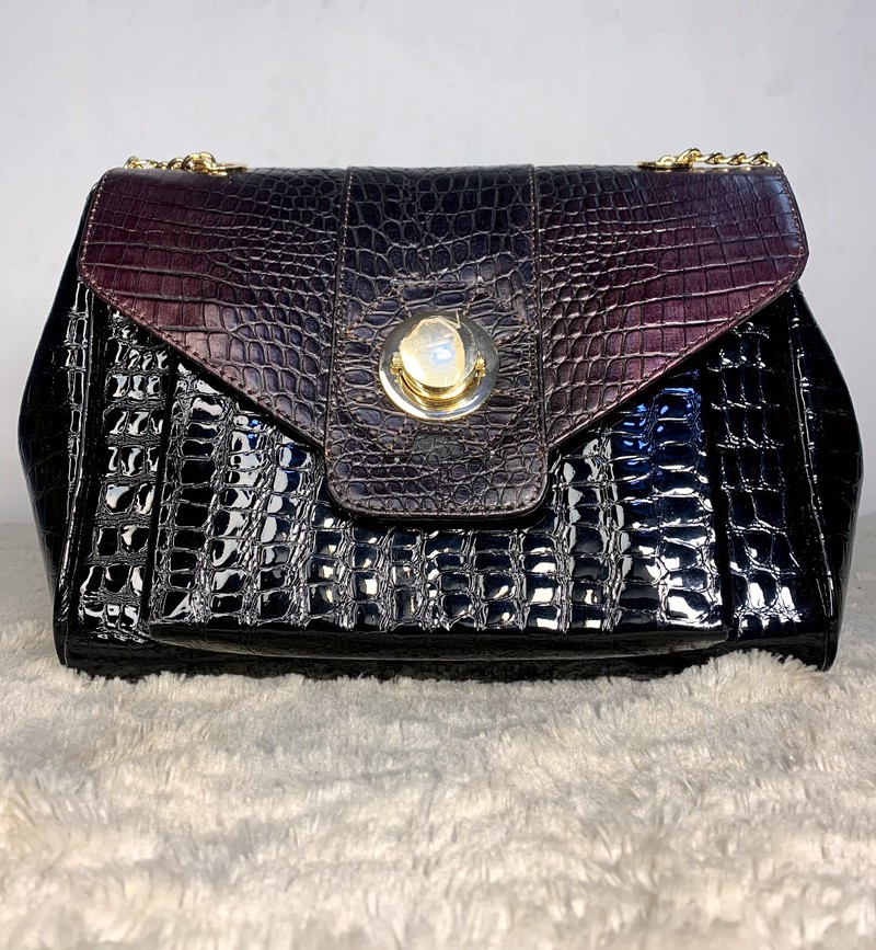 Black Crocodile-Embossed Bag With Burgundy Flap