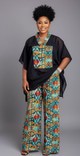 The coordinating wide-leg pants showcase an eye-catching geometric-inspired pattern in rich tones of teal, orange, red, and gold, offering both comfort and standout appeal. Crafted from lightweight, breathable fabric, this set drapes beautifully and allows ease of movement, making it perfect for special occasions, creative events, dinners, or elevated casual wear.