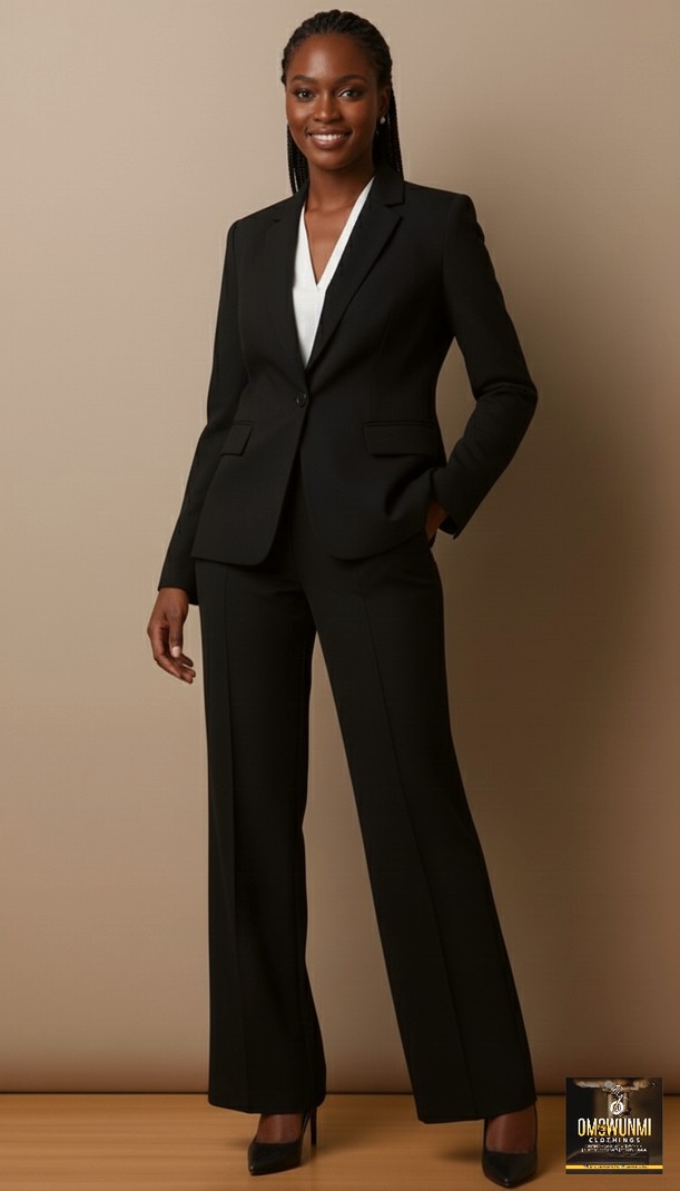 Step into power and confidence with this elegant two-piece suit set. The outfit features a tailored black-colored blazer with a single-button closure and structured fit, paired with classic black wide-leg trousers. Ideal for work, meetings, or formal events, this ensemble blends sophistication and comfort—perfect for the modern, professional woman who values timeless style.