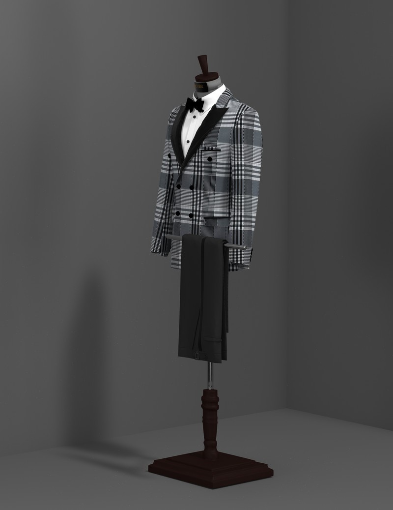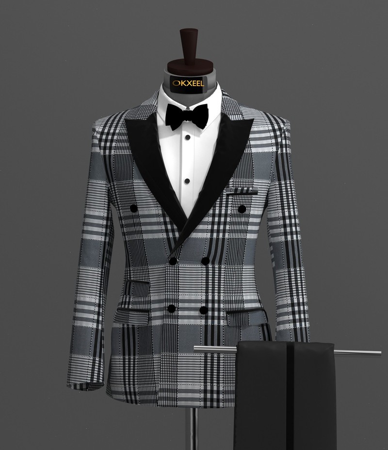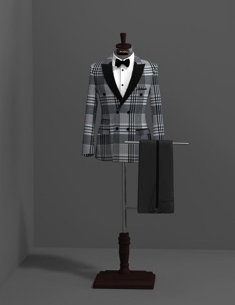 BLACK-WHITE JACQUARD DOUBLE BREASTED SUIT......................BEST SELLER