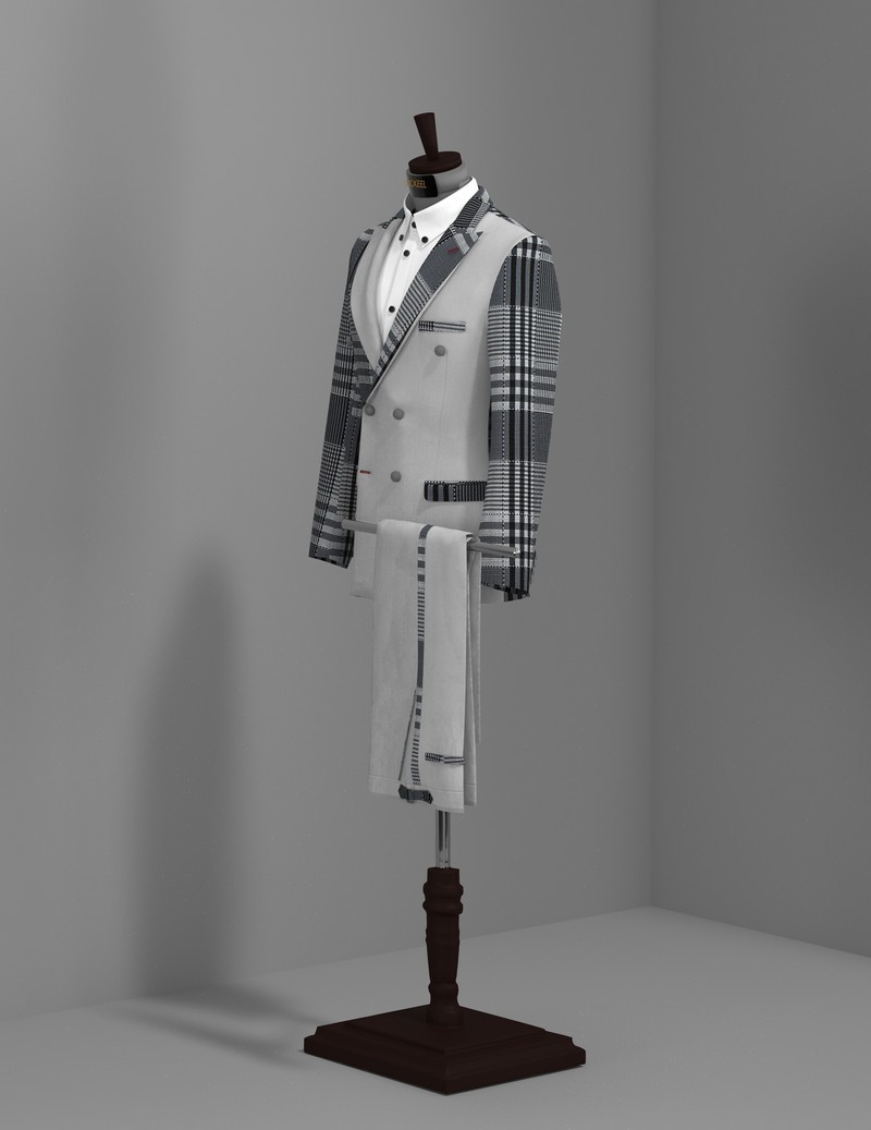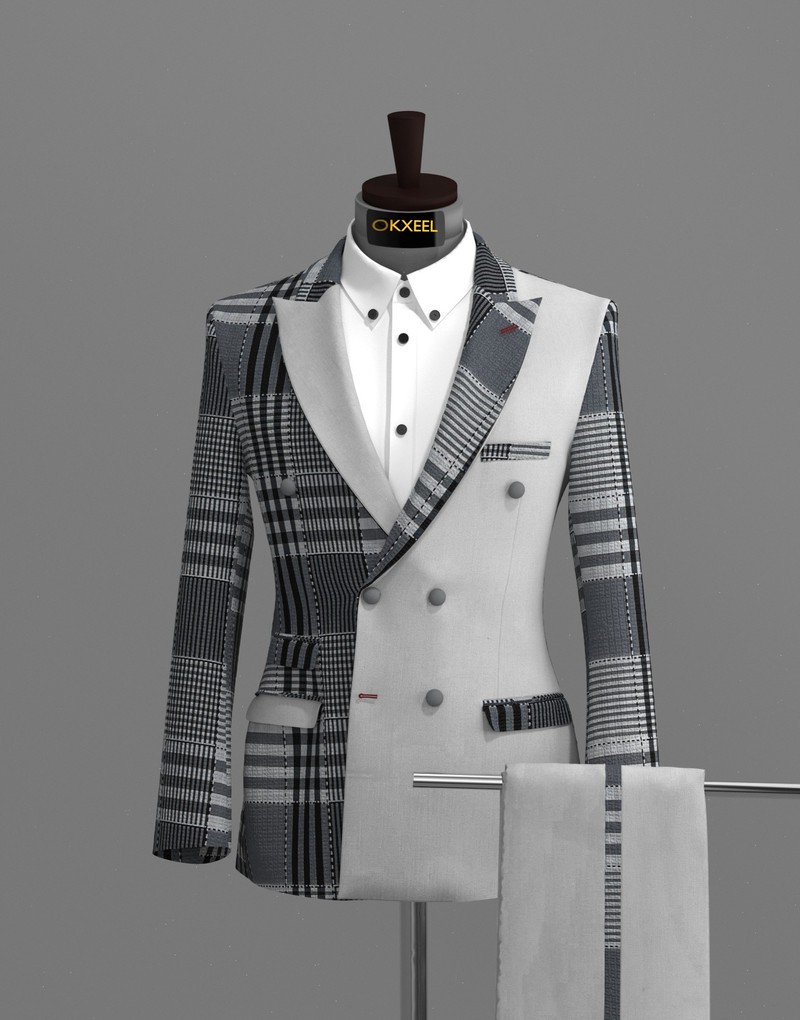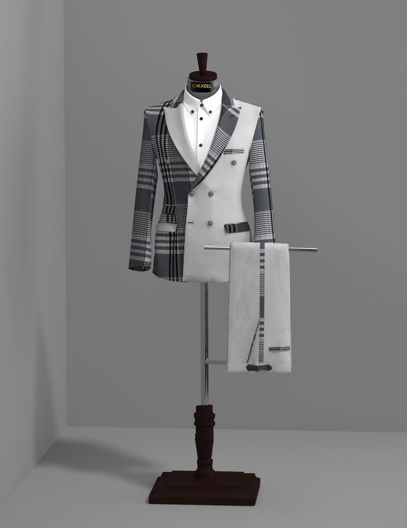 BLACK-WHITE JACQUARD DOUBLE BREASTED SUIT