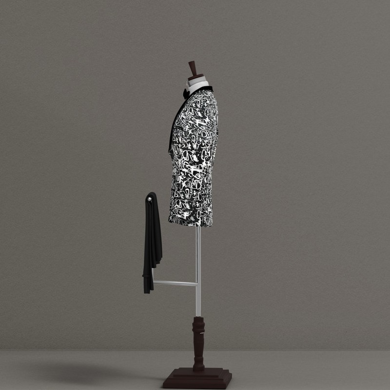 * BLACK_SILVER JACQUARD TUXEDO JACKET