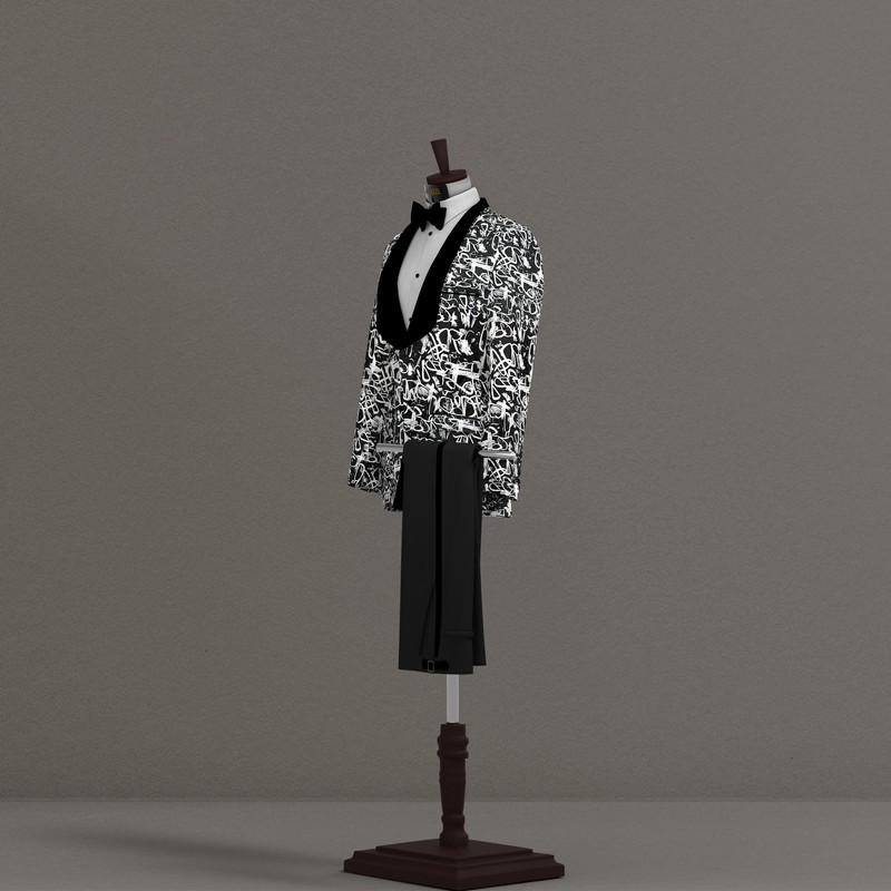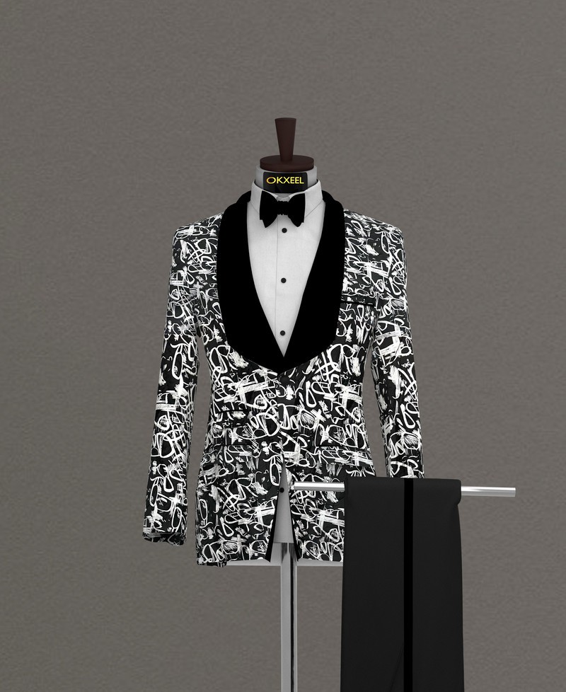 BLACK_SILVER JACQUARD TUXEDO SUIT....................BEST SELLER