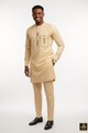 Stay effortlessly stylish in this blonde senator outfit, designed for the modern man who values class and culture. Crafted from smooth, durable fabric, this two-piece senator suit features elegant embroidery on the chest pocket and placket, giving it a refined finish.