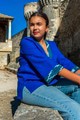 Blouse femme Nkonim – Bleu Saphir Pagne Sénoufo