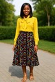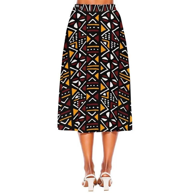 Discover the elegance of the Bogolan Flared Skirt, crafted with vibrant African print and designed in a flattering midi length. This skirt offers a comfortable, flowing silhouette that enhances your natural movement while showcasing rich cultural patterns. Ideal for both casual outings and special events, it adds a distinctive, stylish touch to your wardrobe. Make a confident statement with this unique and versatile piece. Product Features Please Compare your Measurements To our Size Chart before purchase Fabric: 100% polyester * Regular fit * Waist elastic band * Fabric weight: 80g/m² Delivery Time This item will be processed within 3-7 business days (Excluding Weekends and Holidays). Once products ships it can take up to 15 Business days depending on your location. Out of Stock items can be requested by emailing us at [email protected] Care Instructions Machine wash cold inside out. Gentle cycle with mild detergent and like colors. Do not use bleach or fabric softener. Do not tumble dry. Hang to dry to ensure maximum shelf life. Iron inside out if necessary. Do not iron the print. Do not dry clean.
