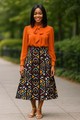 Discover the elegance of the Bogolan Flared Skirt, crafted with vibrant African print and designed in a flattering midi length. This skirt offers a comfortable, flowing silhouette that enhances your natural movement while showcasing rich cultural patterns. Ideal for both casual outings and special events, it adds a distinctive, stylish touch to your wardrobe. Make a confident statement with this unique and versatile piece.