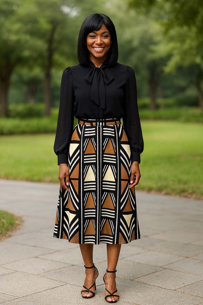 Take your style to the next level with our Boho Midi Skirt, featuring a unique geometric pattern for a bold and adventurous look. Inspired by ethnic fashion, this skirt is perfect for those who like to take risks and stand out from the crowd. Elevate your wardrobe with this statement piece today!