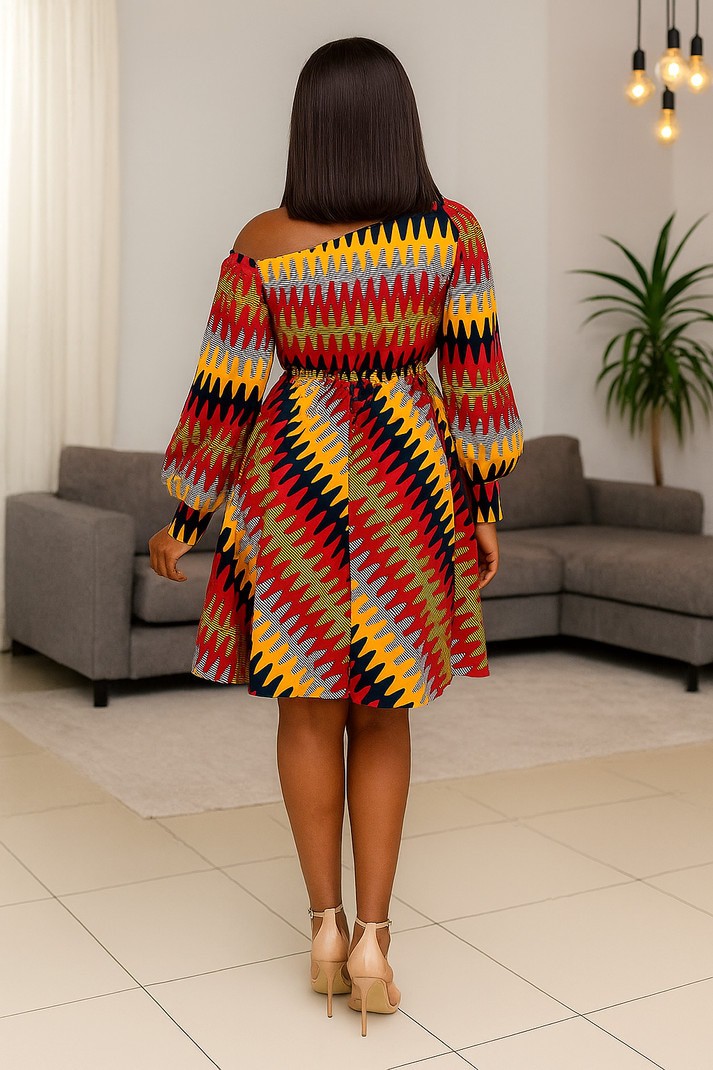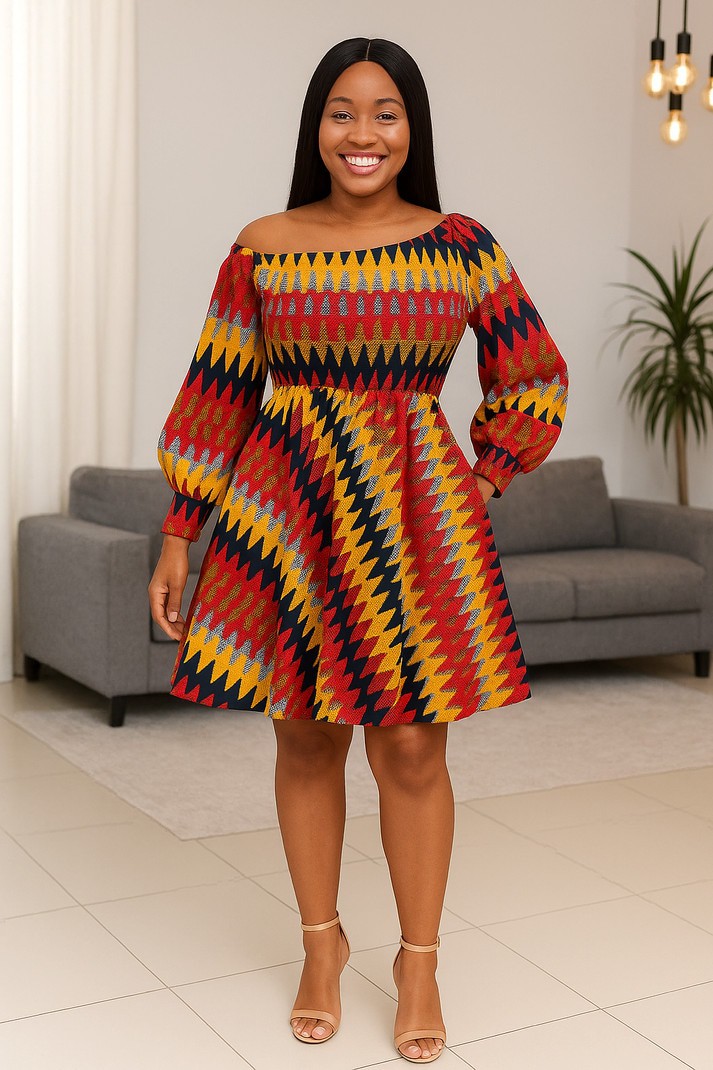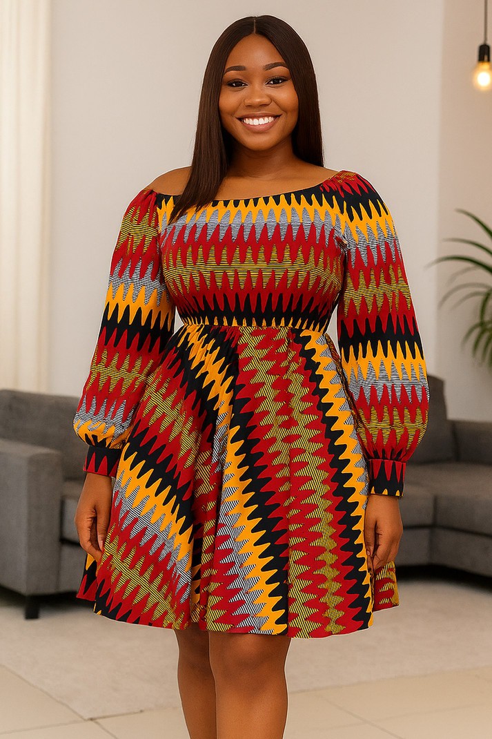 Celebrate your individuality with the Bold-Sleeved African Off Shoulder Dress. Featuring striking sleeves and an elegant off-shoulder design, this dress blends grace with a confident attitude. Its vibrant African-inspired patterns make it perfect for standing out at any event, while the comfortable fit ensures you feel as good as you look. Embrace your style with a dress that empowers and uplifts.