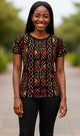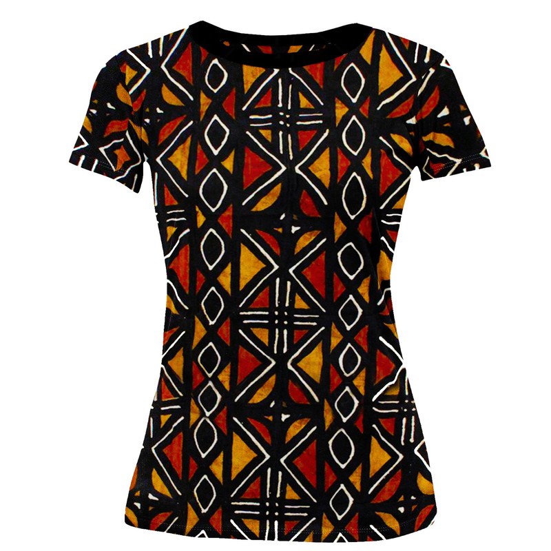 This Bogolan Print Women T-shirt is made from lightweight cotton, making it ideal for summer. It's stylishly printed with a traditional Bogolan design in muted and vivid colors. Perfect for a casual look. Product Features Please Compare your Measurements To our Size Chart This T-shirt is Designed for fashionable women. Made from 5.47 Oz. 100% polyester. Double-needle hemmed sleeves and bottom. Vivid print that will never fade after washing Soft, lightweight and quick drying. Delivery Time This item will be processed within 3-7 business days (Excluding Weekends and Holidays). Once products ships it can take up to 15 Business days depending on your location. Out of Stock items can be requested by emailing us at [email protected] Care Instructions Machine wash cold inside out. Gentle cycle with mild detergent and like colors. Do not use bleach or fabric softener. Do not tumble dry. Hang to dry to ensure maximum shelf life. Iron inside out if necessary. Do not iron the print. Do not dry clean.