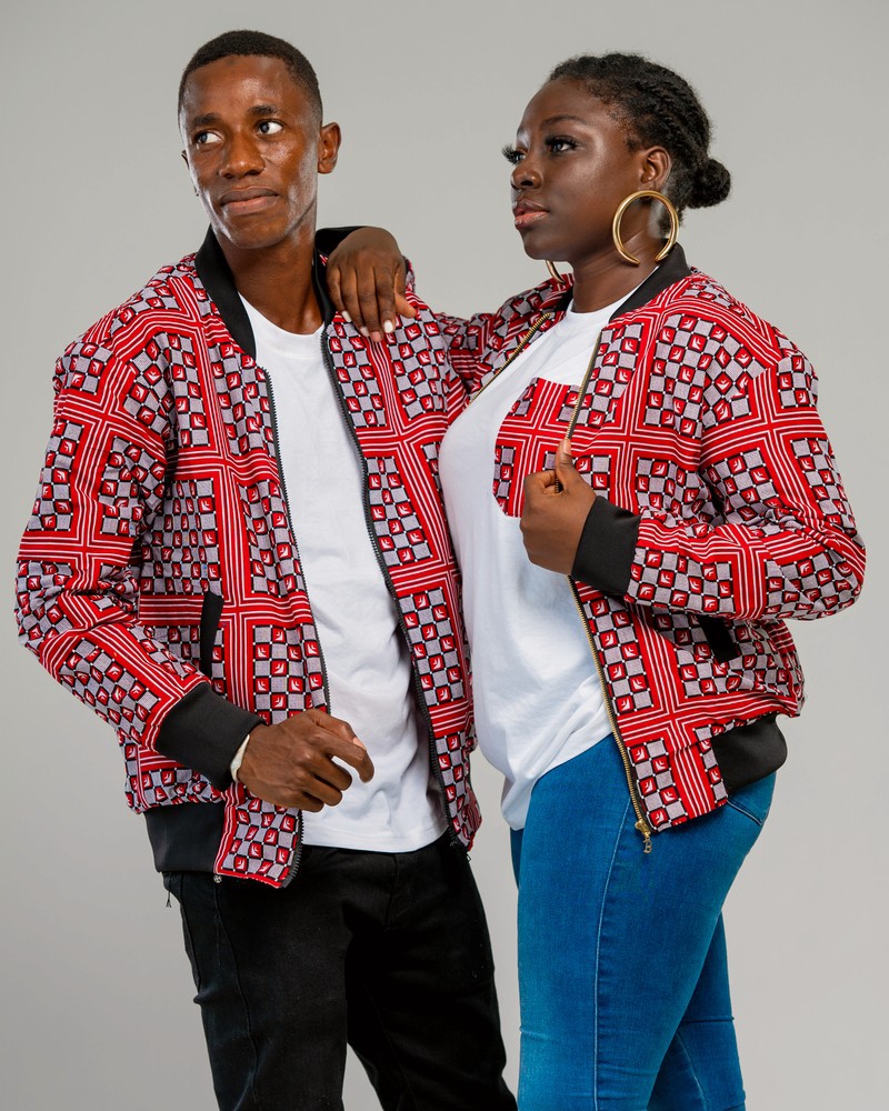 Cette box cadeau est composée d’un tee-shirt blanc avec une poche en Wax & d’un bomber en pagne wax, fait main aux motifs colorés.