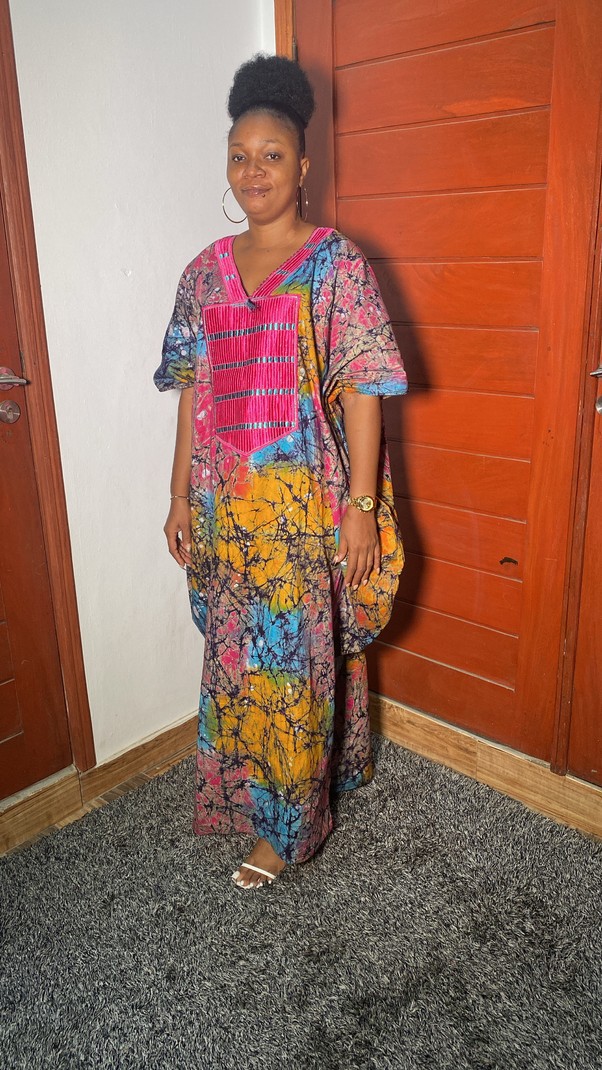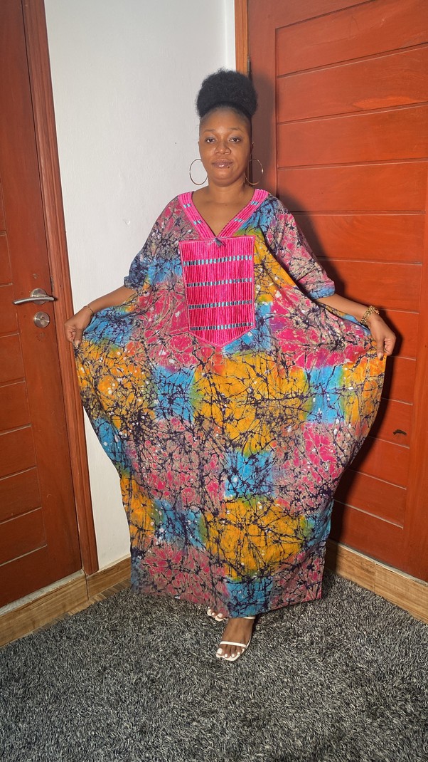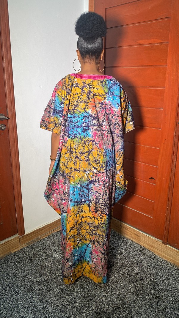 Magnifique boubou rare en Adire Batik Ghanéen spécial brodé Fait à la main, livré avec son Foulard.