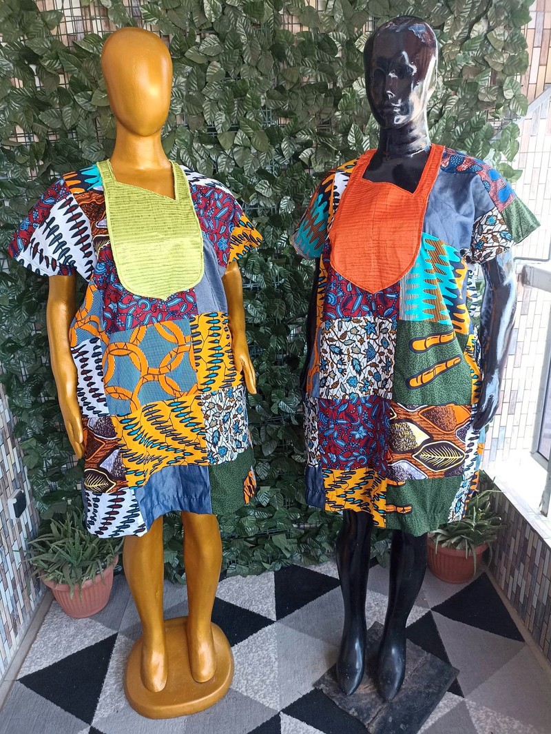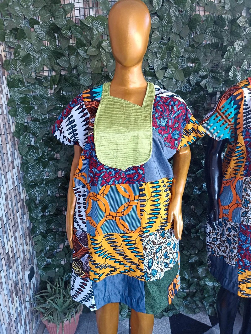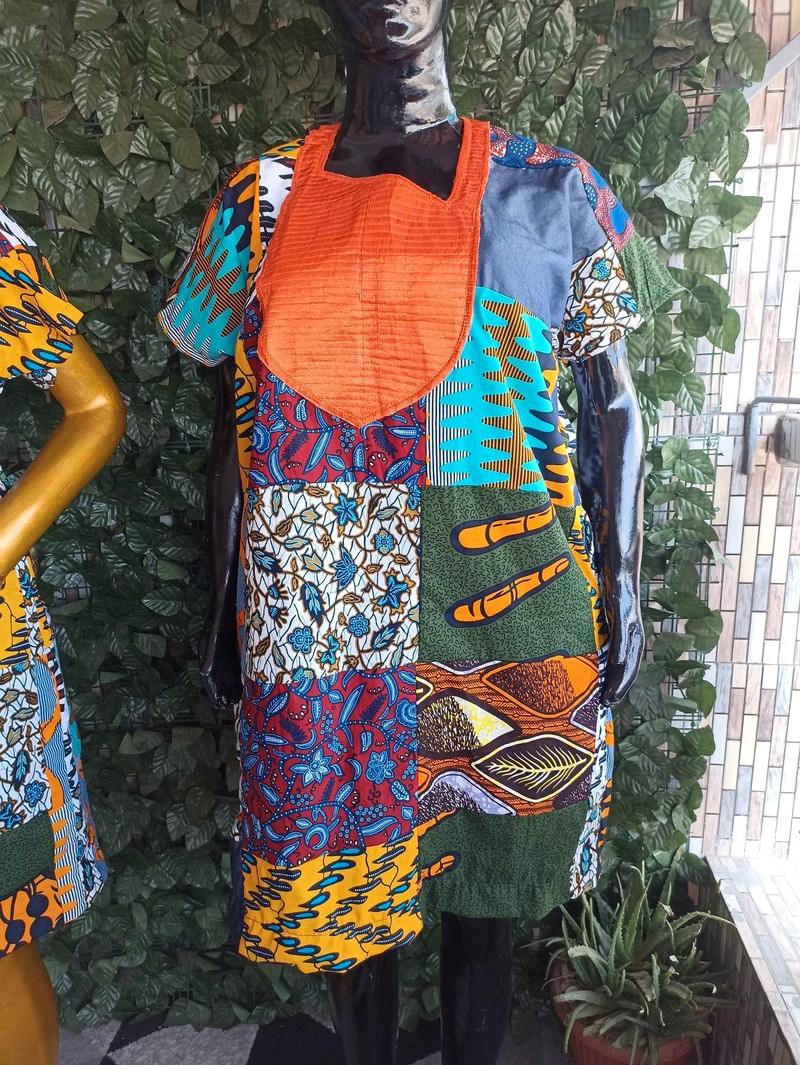 Little boubou patchwork / n'zassa made up of wax scraps with colorful and cheerful embroidery on the front ideal for sunny days / summer suitable for all body types short and relaxed