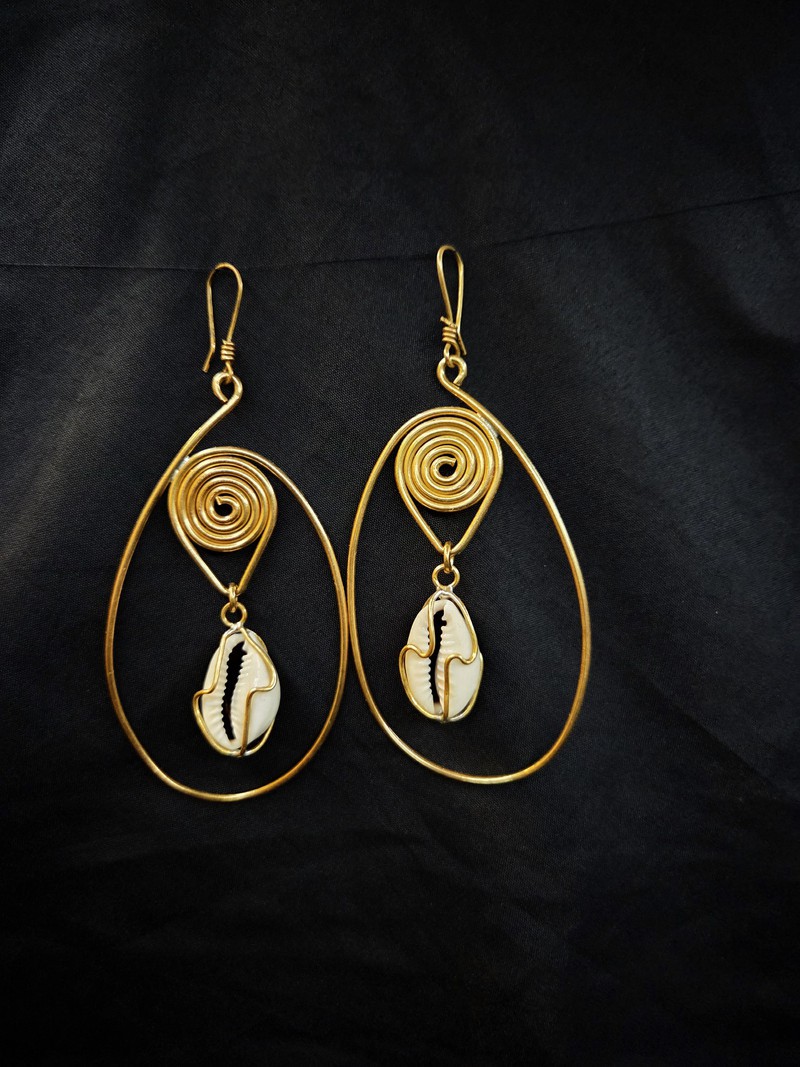 Portées depuis des siècles comme symboles de chance et de protection, les cauris s’invitent sur ces boucles d’oreilles en bronze.