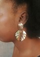 La simplicité se conjugue au glamour : cette paire de boucles d’oreilles en forme de feuilles exotiques offre de l’éclat au quotidien.